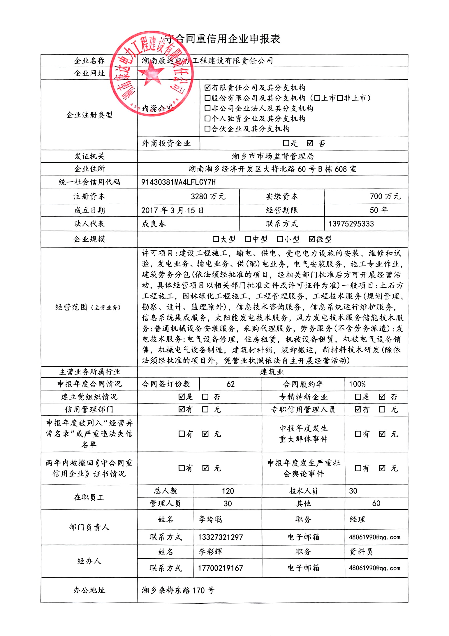 本企業(yè)根據(jù)《湘潭市守合同重信用企業(yè)申報(bào)規(guī)定》等編制 2024 年度企業(yè)信用報(bào)告書(shū),并保證本報(bào)告書(shū)內(nèi)容真實(shí)、準(zhǔn)確、完整。
