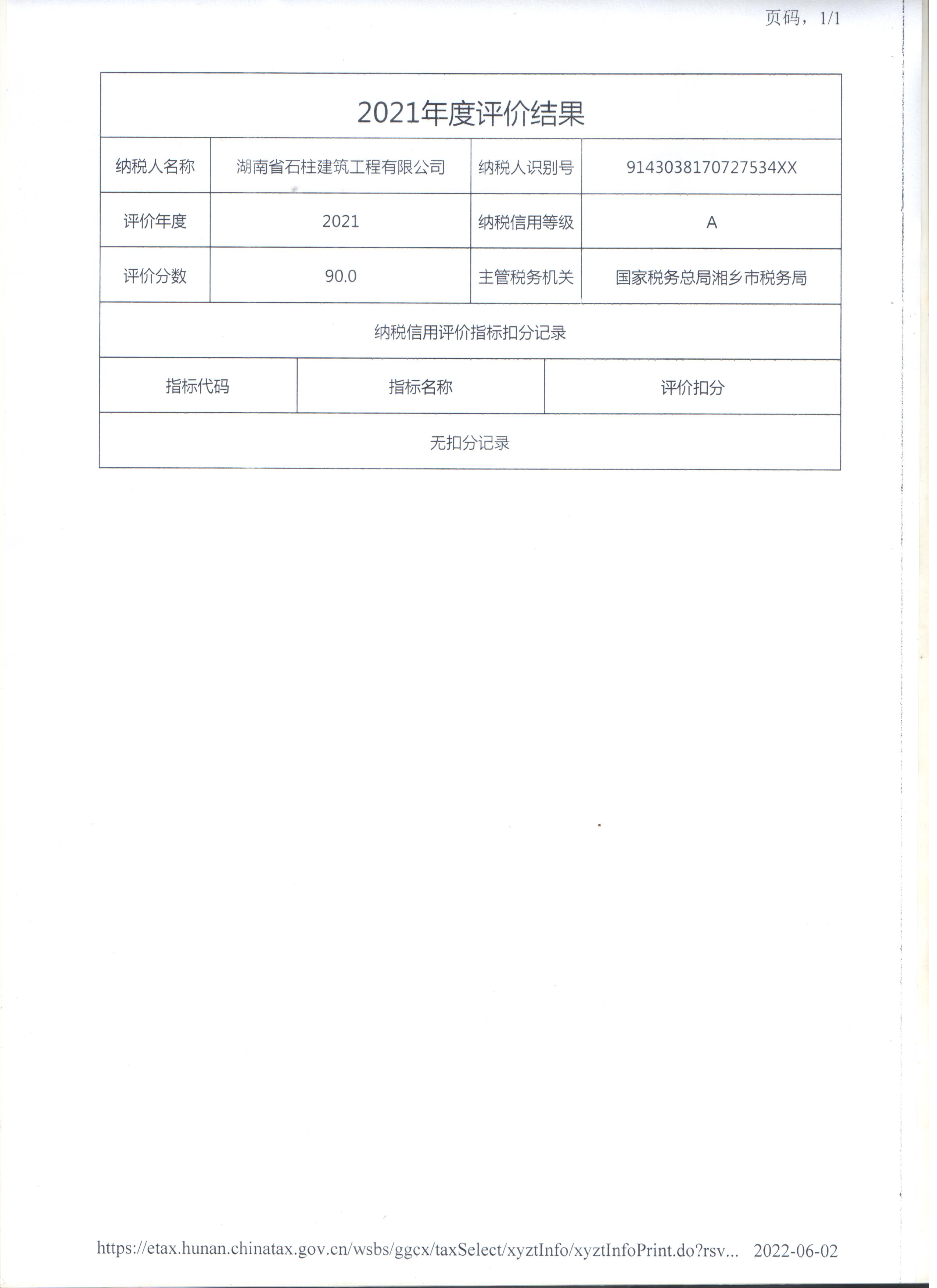 企業(yè)納稅信用等級報告: