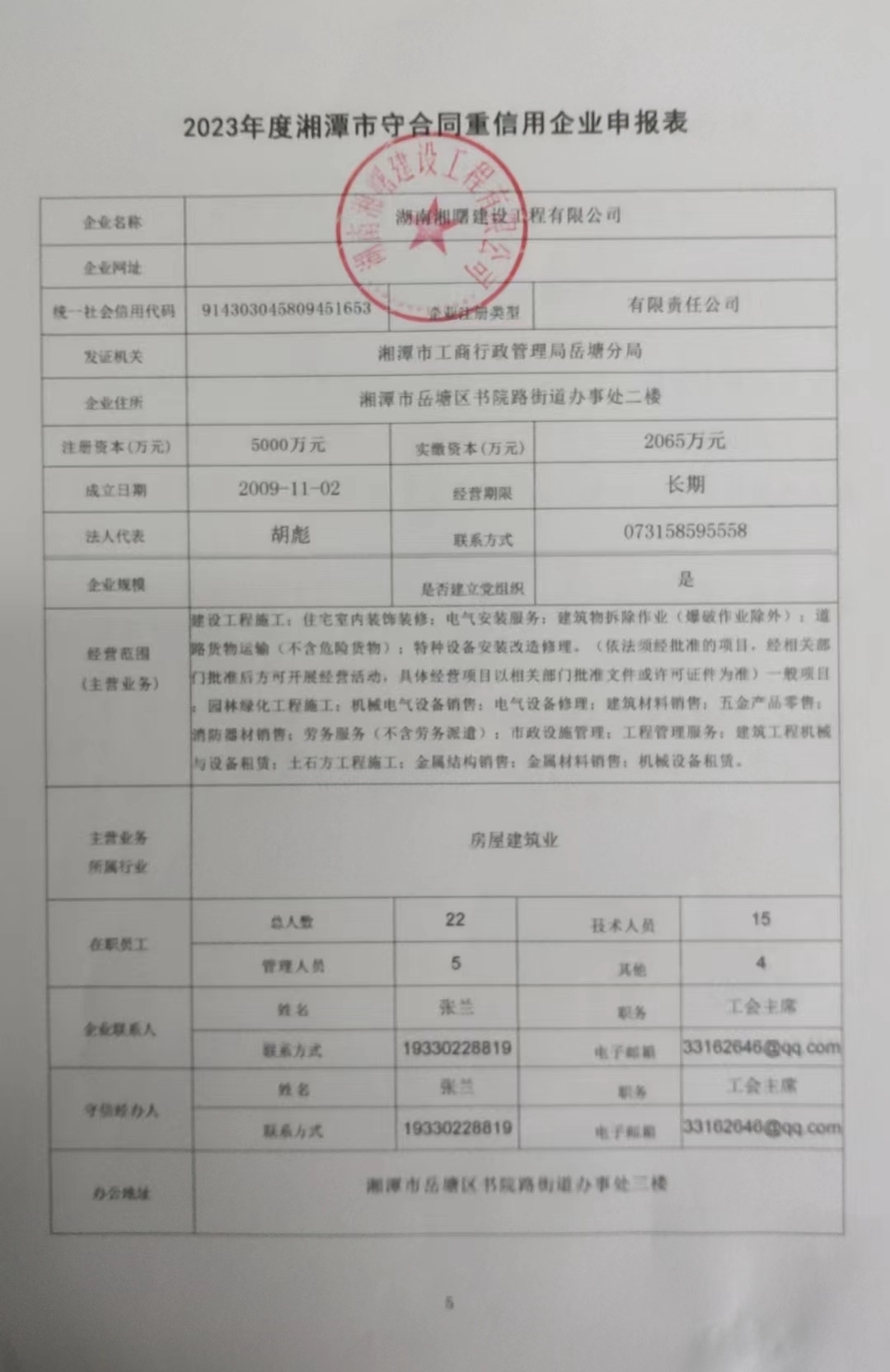 本企業(yè)根據(jù)《湘潭市守合同重信用企業(yè)申報規(guī)定》等編制 2023 年度企業(yè)信用報告書,并保證本報告書內(nèi)容真實、準(zhǔn)確、完整。