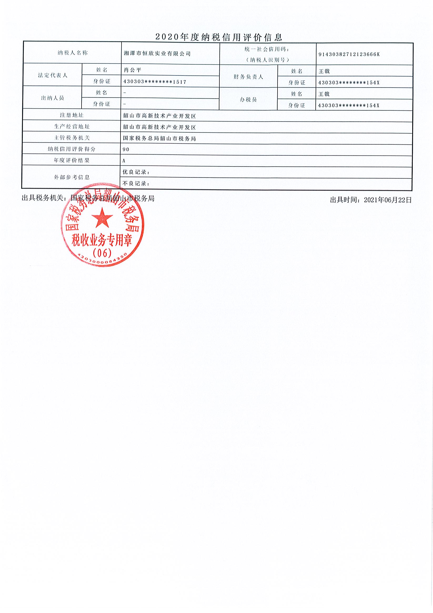 企業(yè)納稅信用等級(jí)報(bào)告: